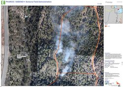In cases of wide-area fires it is essential to precisely locate the source of fires and the directions in which they are spreading. In a joint forest fire drill in Spain together with firefighters and forest fire experts it could be demonstrated under realistic operating conditions how airborne sensors from the VABENE++ project combined with the disaster management system of the PHAROS project can aid the firefighting effort. EOC contributed significantly to the new technology being tested.
