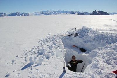 The placement of two instruments for determining snow albedo at the edge of the Transantarctic Mountains made it possible to successfully extend a time series of several years of measurement data collected during the summer months. Having such in-situ data contributes to understanding snow reflectivity—an important value in the global climate system. In addition to setting up and operating the instruments, snow samples were collected from different profile layers. Transported back to Punta Arenas, these specimens will be studied by Chilean colleagues for their soot content (so-called black carbon). The sampling location on Union Glacier is the southernmost measuring point of a transect along the chain of the Chilean Andes. The goal of the Chilean project is to investigate more precisely the influence of black carbon on the optical properties of snow, and thus on the climate.