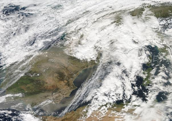 The path of the Sahara dust over the Iberian Peninsula and France can also be traced on an image based on data from the US satellite Suomi-NPP. This dust was transported to southern Germany at the front of a band of clouds extending from northwest Spain over France and Germany.
