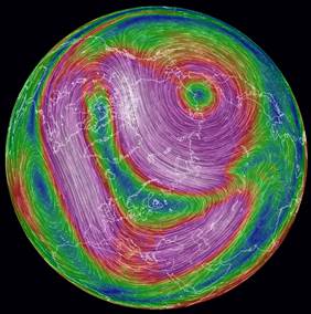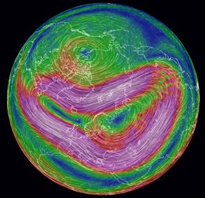 For several days, so-called “sudden stratospheric warming” has been anticipated over the north pole. The phenomenon was discovered in Berlin in 1952. For that reason it is also known as the “Berlin Phenomenon”, although it is actually the entire polar region that is affected. It involves a spontaneous, substantial warming of the stratosphere in winter. The stratosphere extends some 50 kilometres from the end of our “weather layer”, the troposphere, at about 12 kilometres altitude, up to the transition to the mesosphere. Within a few days winter temperatures increase here from the usual -70°C up to -20°C. This warming is often preceded by a cooling of the mesosphere. Stratospheric warming is accompanied by a weakening or even reversal of the west wind that dominates in the stratosphere during winter (see. EOC News of March 2, 2018). These west winds flow around the polar region counter-clockwise in a more or less circular path and are responsible for the formation of a large low pressure area. Stratospheric warming can lead to the disruption of the polar vortex, which then separates into two low pressure areas that drift southward, bringing with them cold arctic temperatures. This can lead to the paradoxical situation that ground temperatures in arctic regions are warmer than those in temperate latitudes.