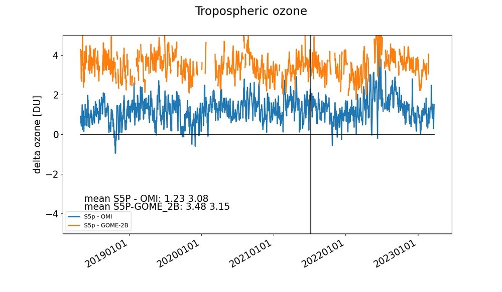 GOME-2 and OMI are precursor instruments of S5P. OMI has been in orbit since 2004 and GOME-2B since 2012. Many products resulting from the S5P missions are based on the experience gained with these instruments. Based on OFFL (offline) total ozone data, algorithms for tropical tropospheric ozone were also developed for these instruments and improved and adapted for S5P.