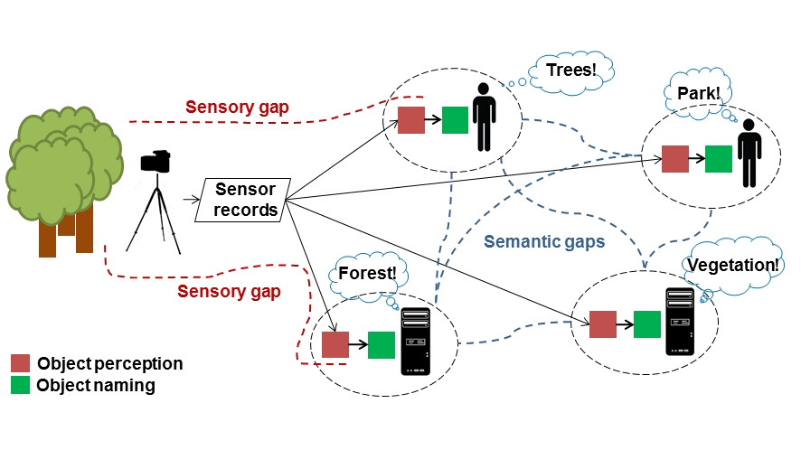 This dissatisfaction is caused by the sensory and semantic gaps. The sensory gap refers to the difference between object perception with the naked eye, and the perception of the object based on the images created from sensor recorded signals. The semantic gap is defined as the difference in the understanding of objects in an image between users and machines, as well as the differences in image understanding between various users.