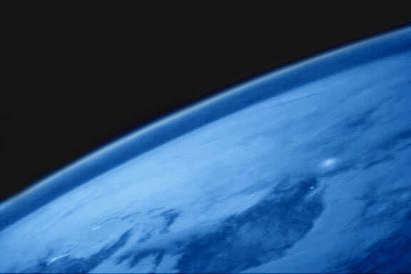 Limb view on the airglow layer as seen by the U.S. Clementine spacecraft (false color image, courtesy of U.S. Naval Research Laboratory).