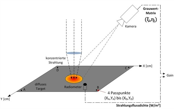 If the radiation, which is concentrated up to 5,000 times, hits solid or liquid materials there, for example ceramic particles or a redox material in a reactor, temperatures of up to 1,800 degrees Celsius are generated. By means of an aperture, the incident concentrated radiation can be regulated to prevent overheating, for example. The arrangement of heliostat, concentrator and laboratory space in the so-called "off-axis geometry" offers the advantage that the experimental setups do not partially shade the incident radiation.