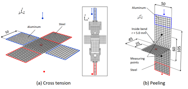 Simulation models for head and peel tensile test for a connection with flow drilling moulded screws (FDS)