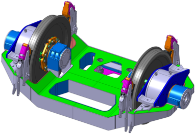 At the end of the current construction phase of the NGT-FuN project the M1:1 prototype of the NGT bogie will be available in an assembly and integration test bench. This setup, bogie in the integration test bench, enables simple, qualitative functional testing of the sensors, actuators and control and automation technology.