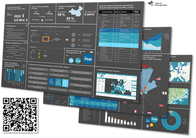 The transformation hub "Scale-up E-Drive" supports small and medium-sized companies in the automotive industry in Germany in particular in the transformation to electrified powertrains by preparing relevant trends and developments on industry, market, technology, product and production knowledge, classifying them in an international context and providing them in the form of transformation factsheets and dashboards.