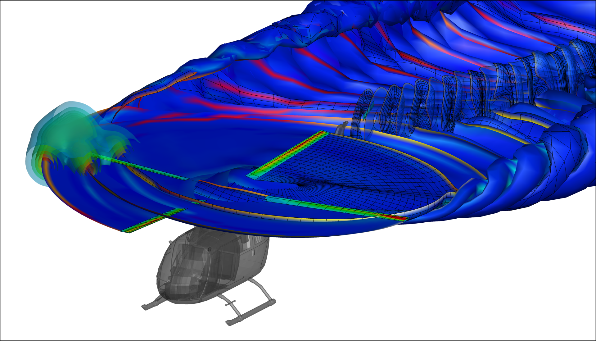 The freewake calculation of the Bo105 was carried out at a flight speed of 50 m/s. This analysis makes it possible to analyse the physical flight characteristics of the helicopter.