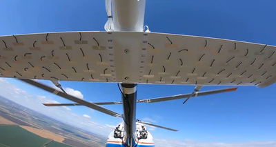 In addition, woolen threads were glued to the horizontal stabilizer and filmed in flight with two cameras. The data obtained about the flow behaviour around the horizontal stabilizer was used to validate the CFD calculations.