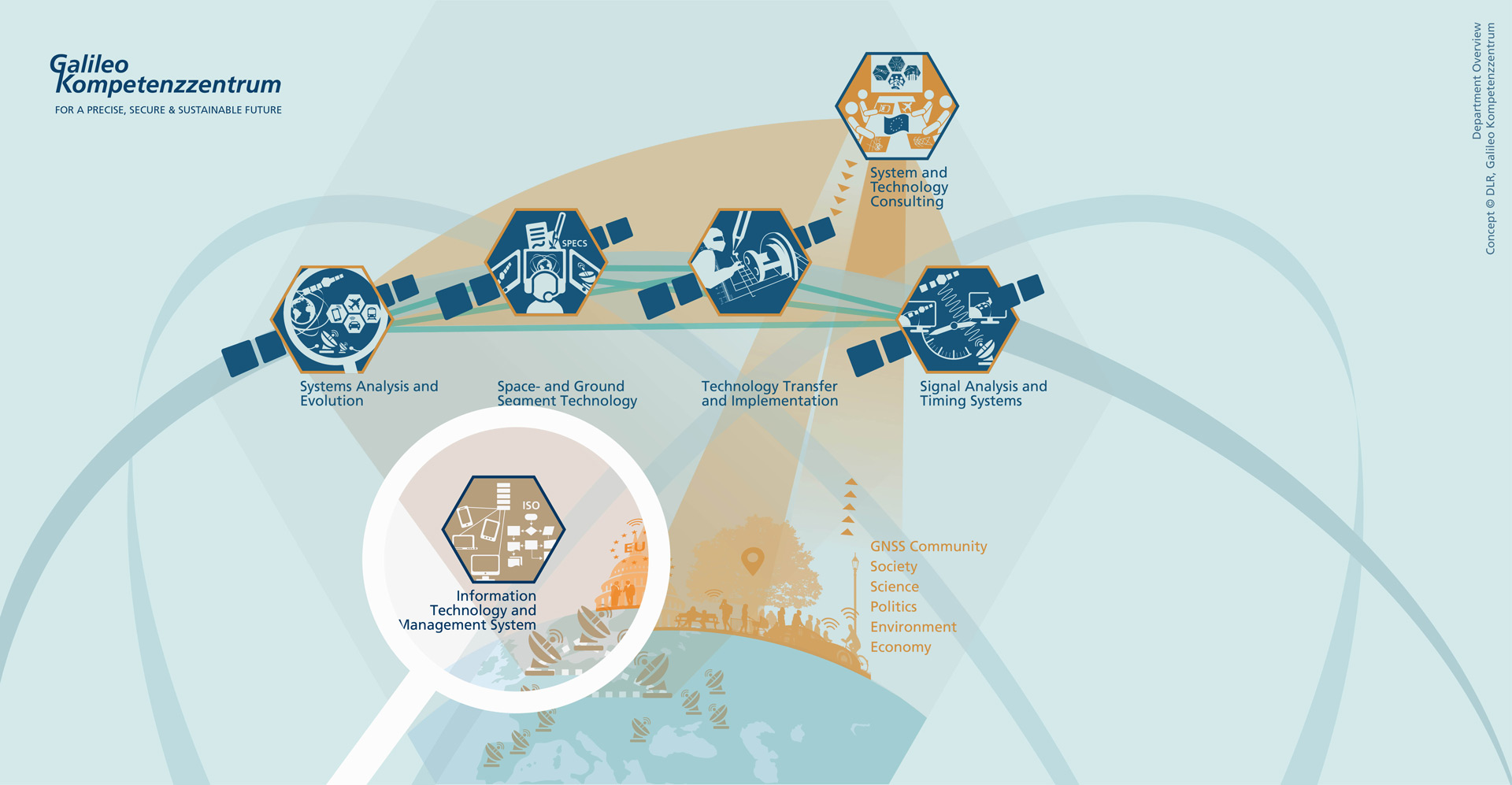 The IT and Management System department (ITM) coordinates and supports the entire Galileo Competence Center. The "Project and Tool Support" group handles tasks relating to infrastructure, hardware and software as well as IT security. The "Processes, Quality Assurance and Standardisation" group deals with the topics of quality and product assurance, process management, norms and standards as well as occupational health and safety. The aim of the ITM department is to support the projects and ventures at the GK in a reliable, requirements- and service-oriented manner in order to achieve sustainable technological success.