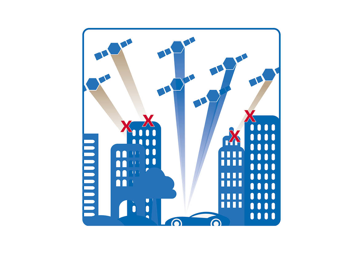 Each GNSS uses its own satellite constellation, utilises different frequencies and uses different algorithms for signal processing. As a result, GPS, GLONASS, Galileo and BeiDou differ in accuracy, coverage and robustness. This can have a significant impact on end users in different regions and under different environmental conditions. The signals chosen by multi-GNSS receivers depend on location and many other parameters that affect the performance of GNSS signals. For example, the number of satellites visible to a receiver and their geometric arrangement in the sky have an immense influence on positioning accuracy. These factors are indicated by the DOP (Dilution of Precision). For the DOP, it is important how well the satellites of the respective GNSS are distributed over the orbit and in what geometric relationship to the receiver they are located. There are better and worse constellations here. The signal can also be inhibited on earth: For example, reception suffers in deep urban canyons if buildings block the signals or the signals are reflected by surfaces. The earth's atmosphere can also cause considerable signal delays and distortions. Free electrons in the ionosphere can deflect the signals from GNSS satellites and thus delay them as they pass through this layer on their way to a receiver on the ground.