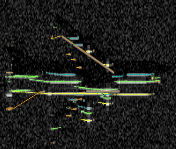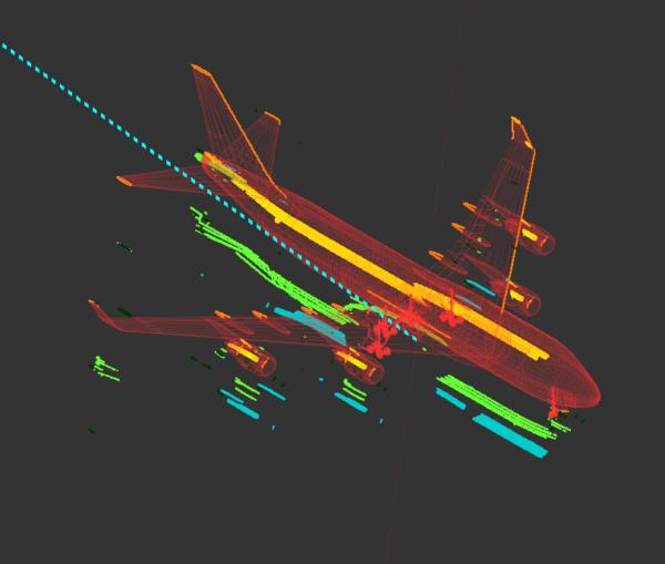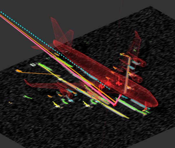 Figure 4: Simulated SAR signature of a Boeing 747 overlaid with color-coded scattering effects