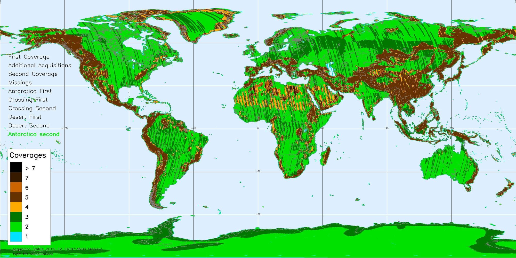 Number of TanDEM-X acquisitions performed for the global digital elevation model.