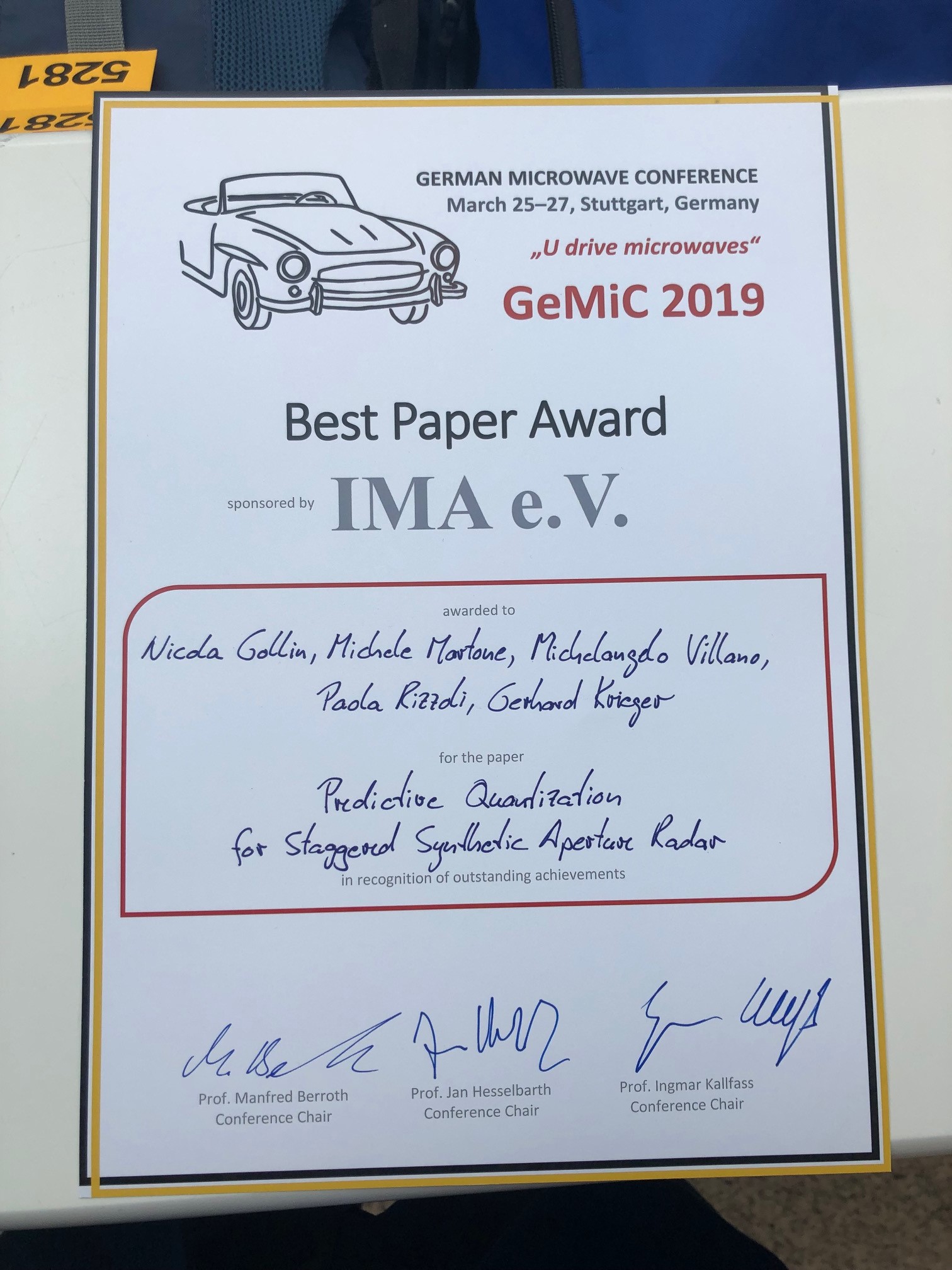 GeMiC 2019 - Best Paper Award - Nicola Gollin, Michele Martone, Michelangelo Villano, Paola Rizzoli, Gerhard Krieger
