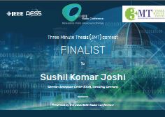 We are pleased to announce that our colleague Sushil Kumar Joshi has won one of five prizes awarded during the "Three Minute Thesis (3MT) Contest". This contest was held by IEEE during the "IEEE Radar Conference" in Florence, Italy. The best five videos were selected from all submitted videos. They were awarded the title "Finalist". Another video of these five was also awarded the title "Winner" based on an online viewer voting.