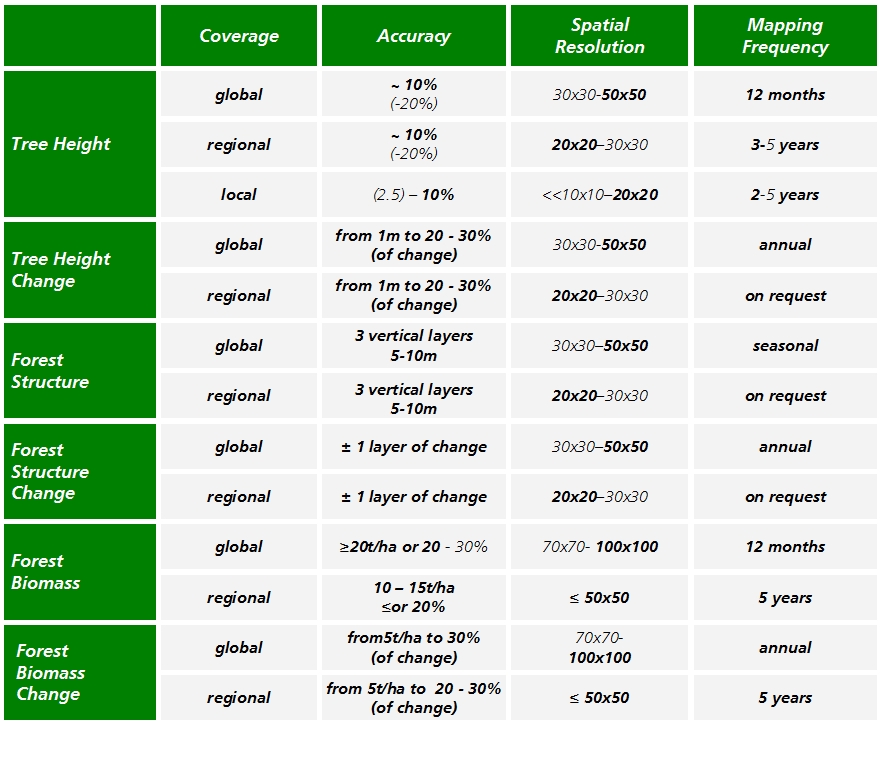 The parameter which characterises the distribution of carbon in the biosphere is biomass. The importance of biomass manifests itself not only due to its role as a carbon sink or carbon source, but also due to its relevance for characterising forest or ecosystem productivity. Dynamic variations in the biomass are a direct measure of the exchange of carbon between the terrestrial ecosystem and the atmosphere. Biomass inventories and biomass dynamics in local, regional and global scales are essential, though, up to now, largely unknown initialisation parameters of current climate models (see Figure 3). A precise determination (~20%) of the spatial distribution of forest biomass would be sufficient to match the inaccuracy of terrestrial carbon fluxes to the other components of the carbon cycle. Biomass was identified by the UNFCCC as an Essential Climate variable (ECV), whose determination is of great importance to reduce the uncertainties in our knowledge of the climate system.
