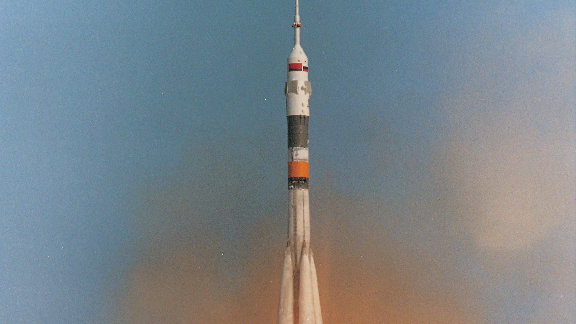 Liftoff of the Soyuz A-2 on 17 March 1992 at 11:54 CET from the Russian Baikonur Cosmodrome in Kazakhstan, bound for the Mir space station. The astronauts Alexander Kaleri, Alexander Viktorenko and Klaus-Dietrich Flade are on board.