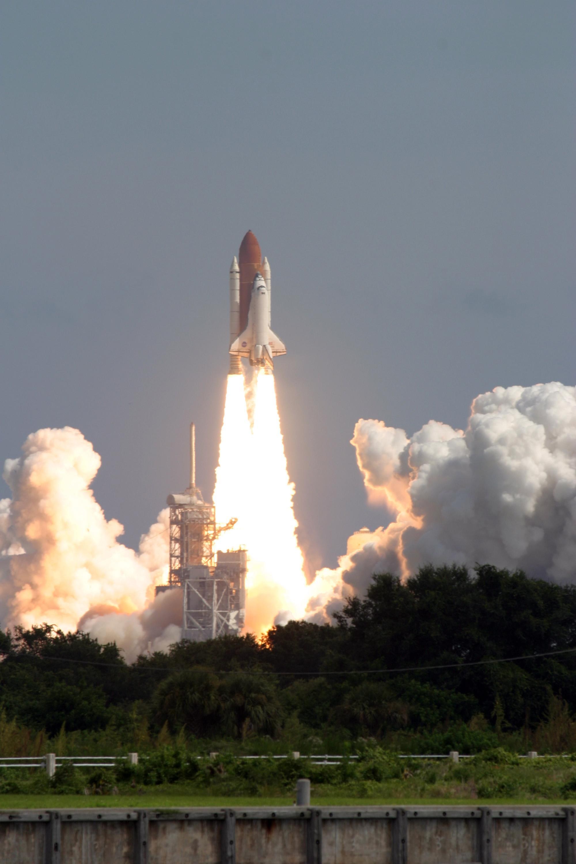 With a fiery liftoff, on 9 September 2006 Space Shuttle Atlantis rumbles off the launch pad for a rendezvous with the International Space Station on mission STS-115.