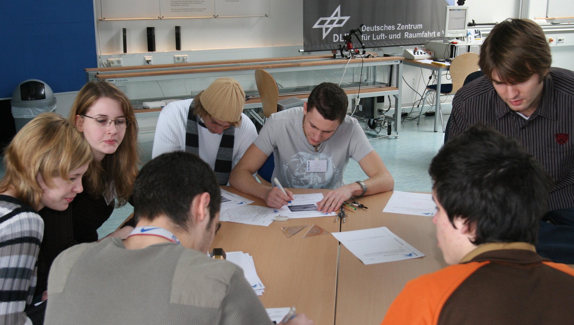 At the DLR_School_Lab in Göttingen, groups of school pupils are working on assignments. Theory is just one aspect of a visit to the school lab, though: Ample attention is given to the practical side of things – experimenting and tweaking – as well.