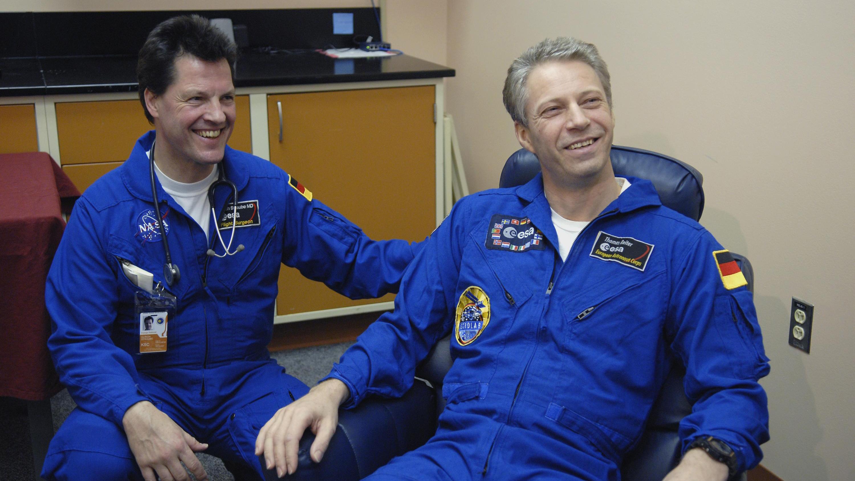 Thomas Reiter, at the Kennedy Space Center (KSC), after his return from the 171 day-long Astrolab mission on the ISS in late 2006.