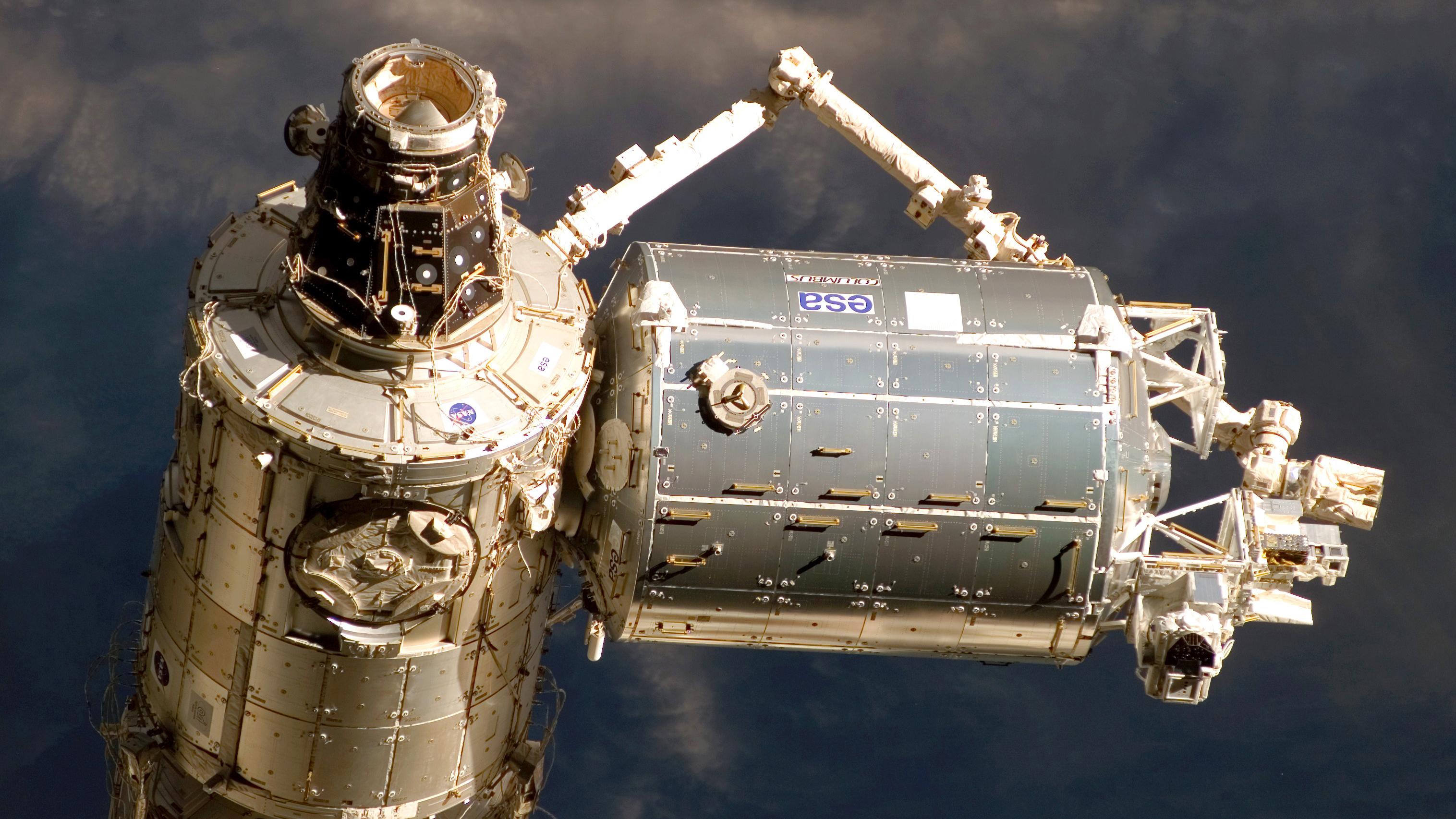 View of the Columbus laboratory from the Space Shuttle Atlantis