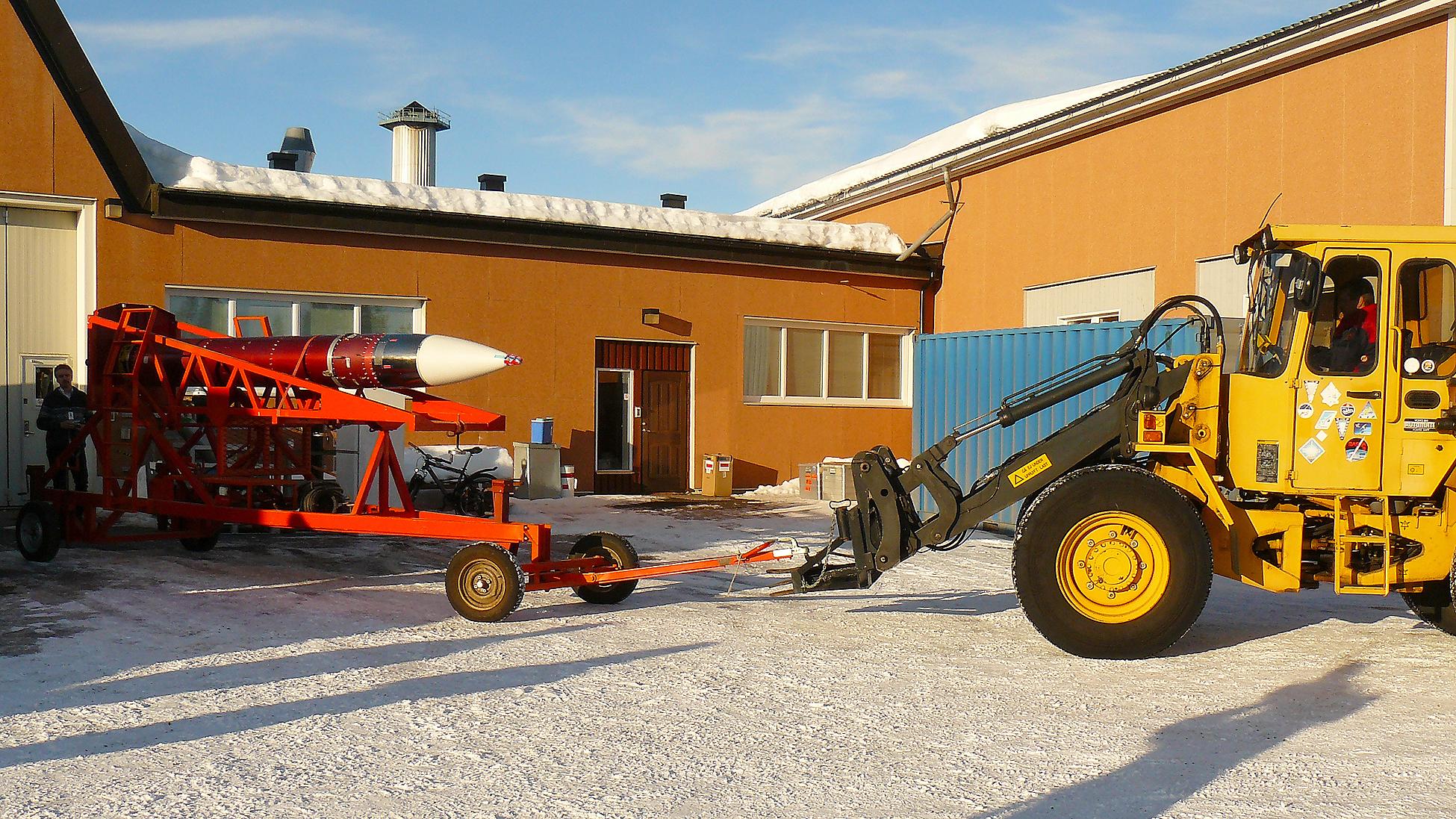 The TEXUS 49 payload being transported to the launch tower, where it is will be mated with the rocket.