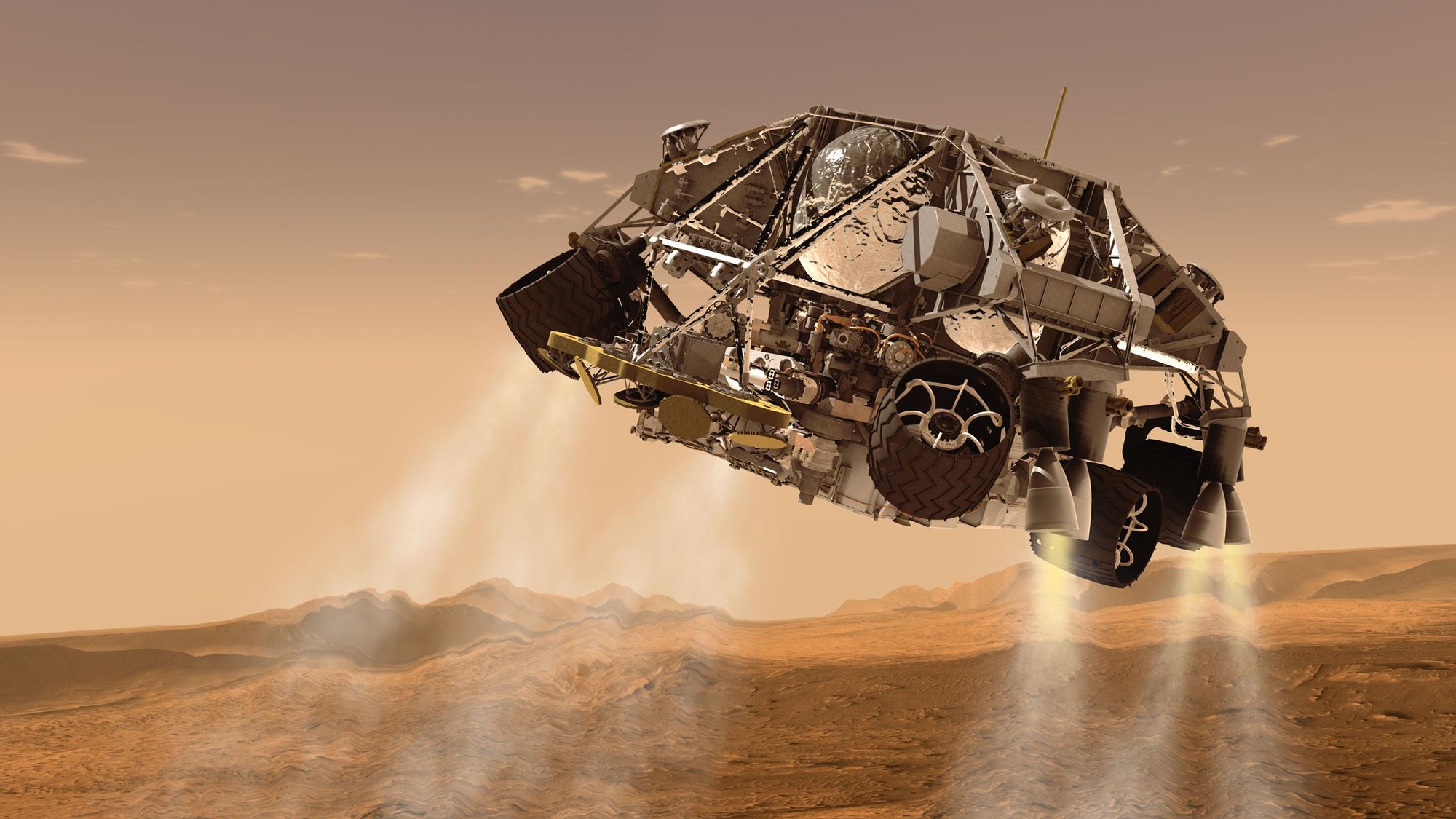 The Mars Science Laboratory will employ a complex hovering manoeuvre to land on the surface of Mars.