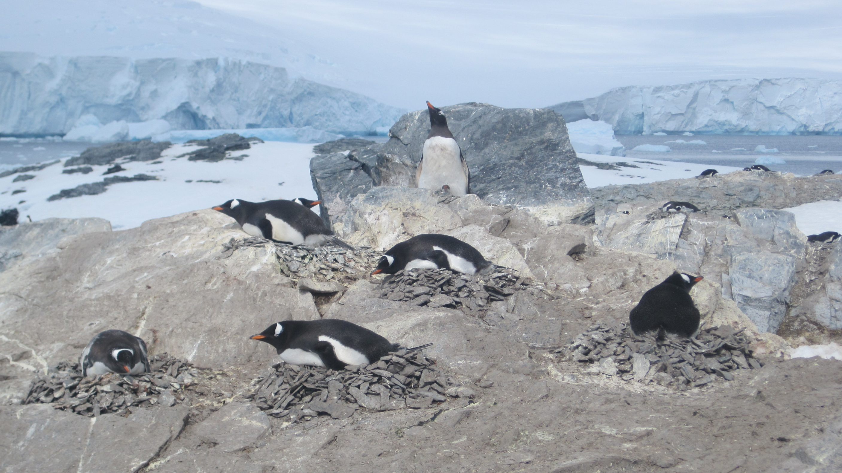 Penguins live and breed around the DLR O’Higgins GARS Antarctic station. When storms are raging, the birds seek refuge at the base of the nine-metre antenna. In summer they breed close to the station.