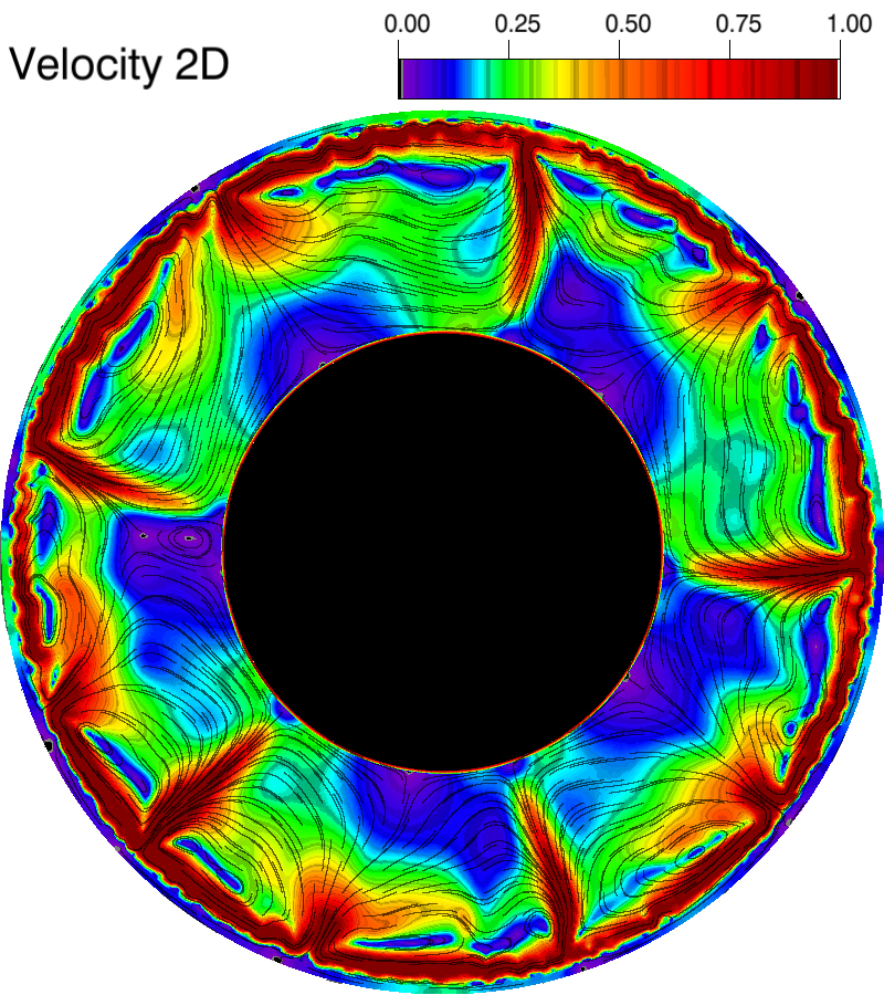 Sectional image of Venus showing the calculated planetary mantle convection