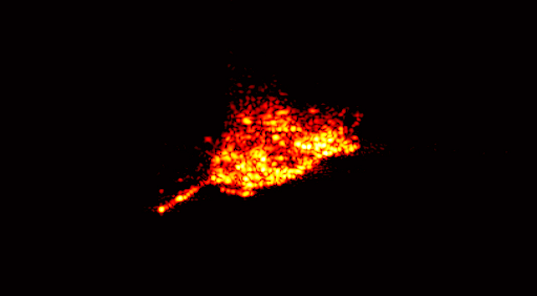 A few days before re-entering Earth's atmosphere, the German X-ray research satellite ROSAT was targeted by the Tracking and Imaging RAdar (TIRA) at the Fraunhofer Institute for High Frequency Physics and Radar Techniques in Wachtberg, near Bonn, which is unique in Europe. TIRA is part of a global network of monitoring stations that collected data about ROSAT. From this data, the orbit was determined and images were produced. This example, acquired on 20 October 2011, clearly shows the antenna mast of the satellite.