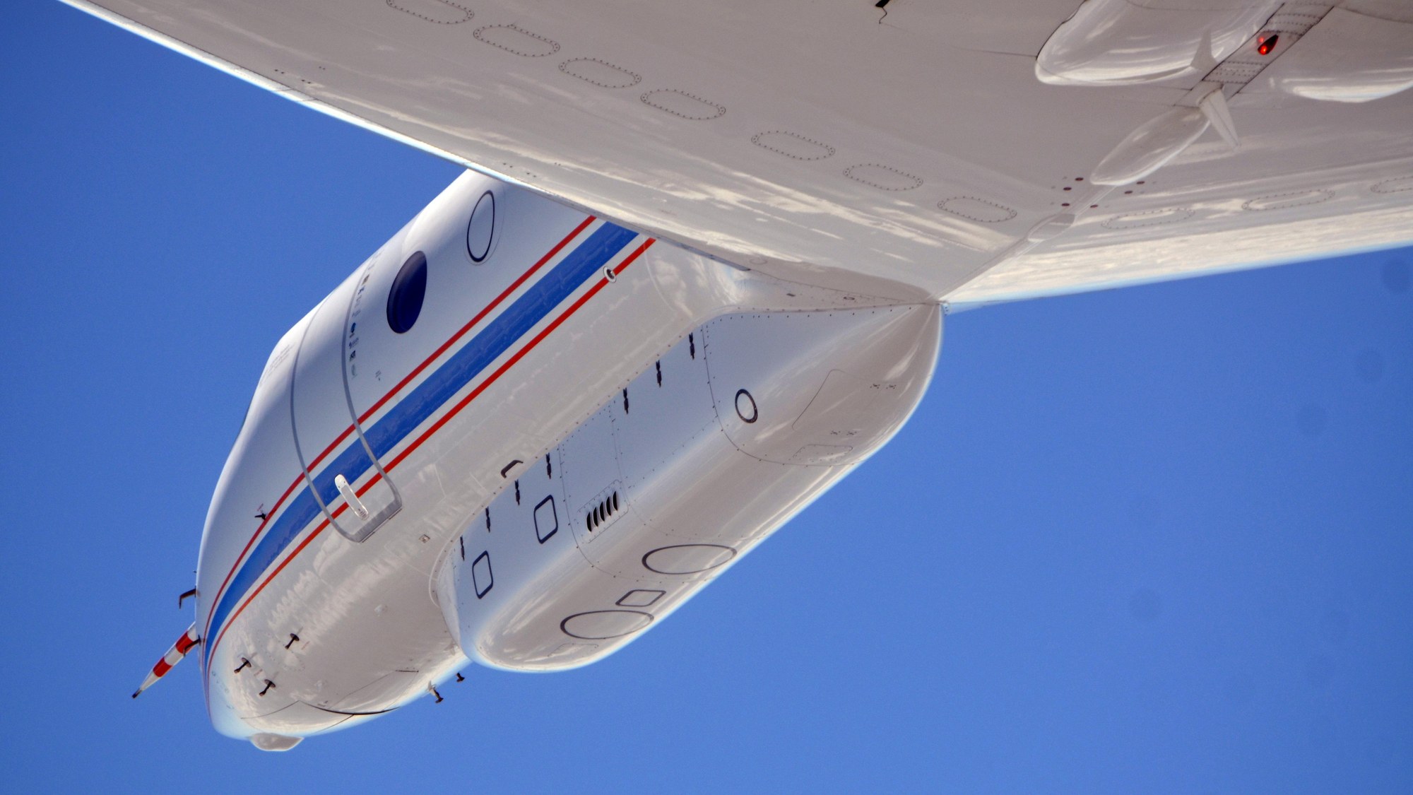 Easily visible in the image is the belly pod, where additional scientific instruments are installed.