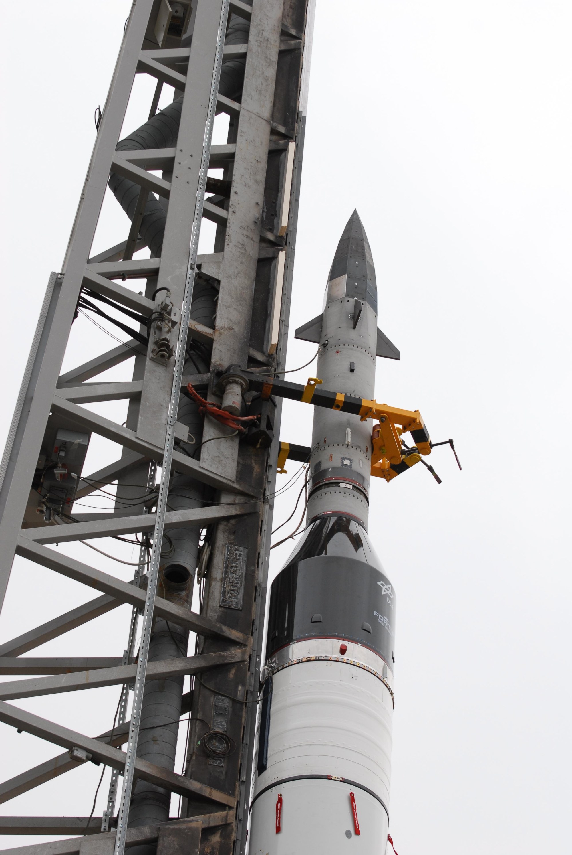 The SHEFEX II craft, its launch vehicle and the tower during a practise countdown.