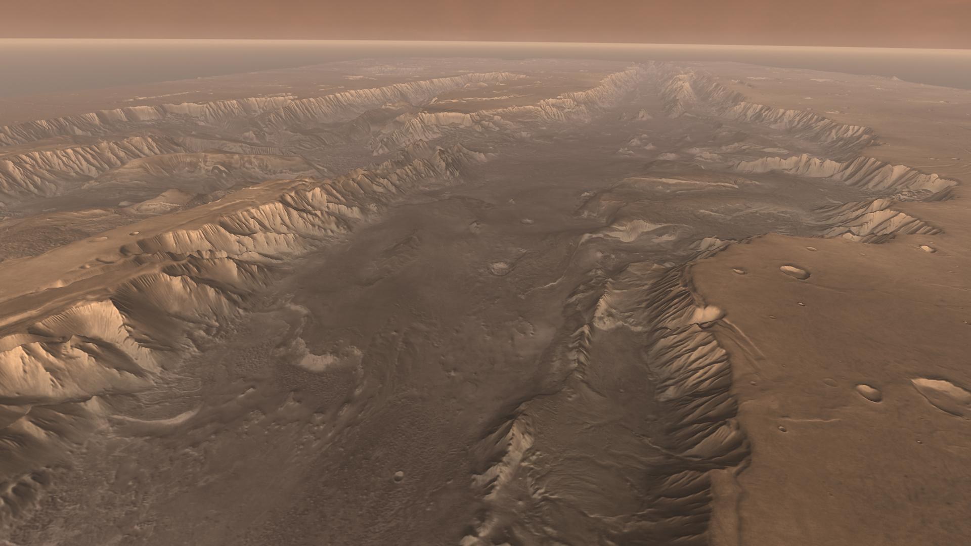 Perspective view of the enormous Valles Marineris canyon on Mars.