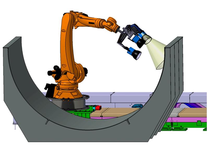 A large robot platform is set up to perform various automated manufacturing processes in industrial scale. To ensure the quality of the parts, among other techniques, contactless lock-in thermography is implemented. This test method detects defects in depth of the parts, for example by means of optical excitation and temperature signals.