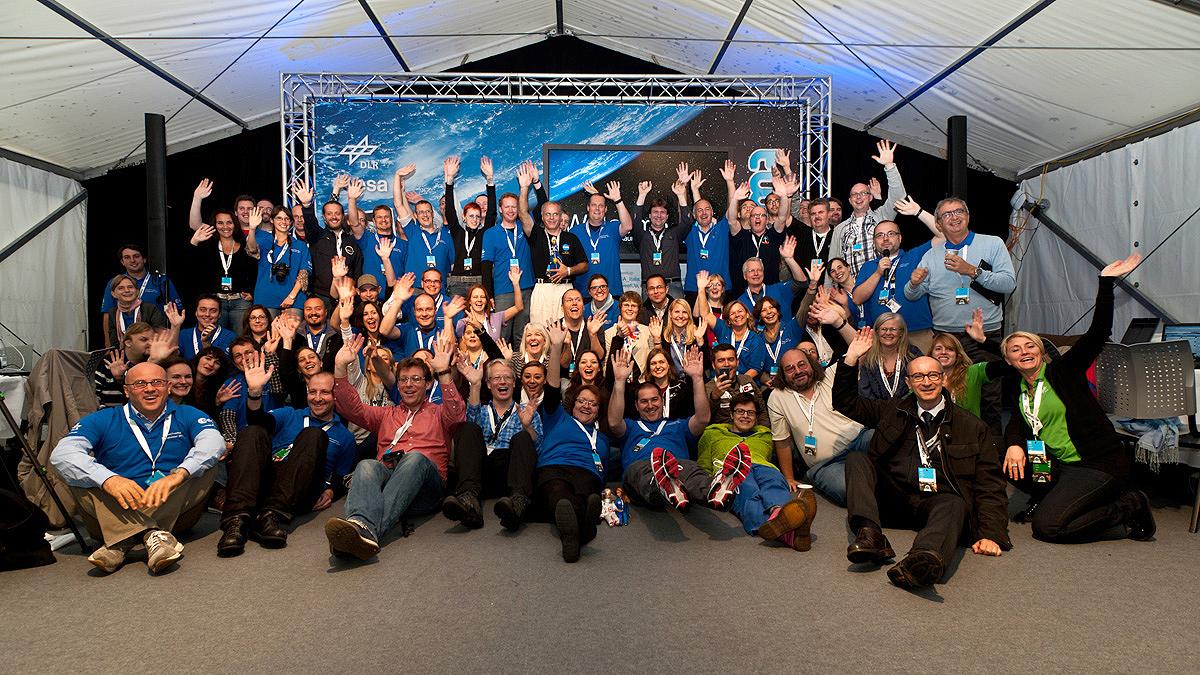 Group photo of the 60 participants in the first European SpaceTweetup, German Aerospace Day 2011.Meiners