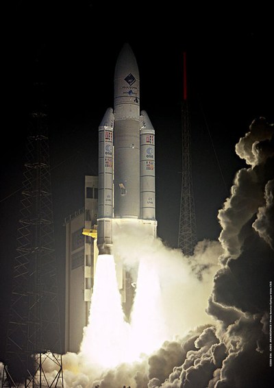 Launch of the Ariane 5 G+ (Flight 158) from Europe's spaceport in French Guiana on 2 March 2004 at 08:17 CET. On board is the Rosetta spacecraft.