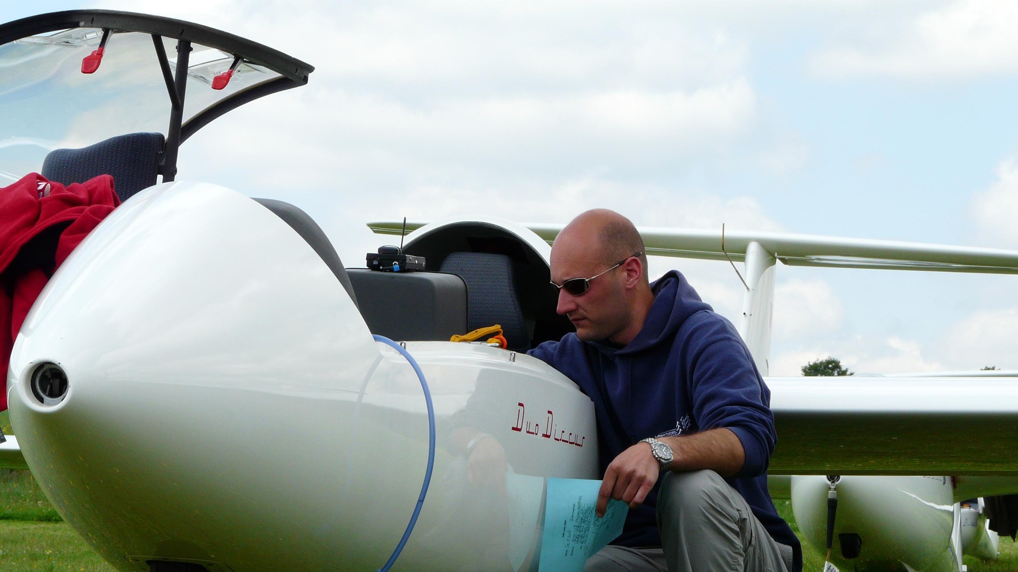 Kai Wicke prepares for a flight at the 2009 German Gliding Championships in the two-seater class. He flies frequently in national competitions.