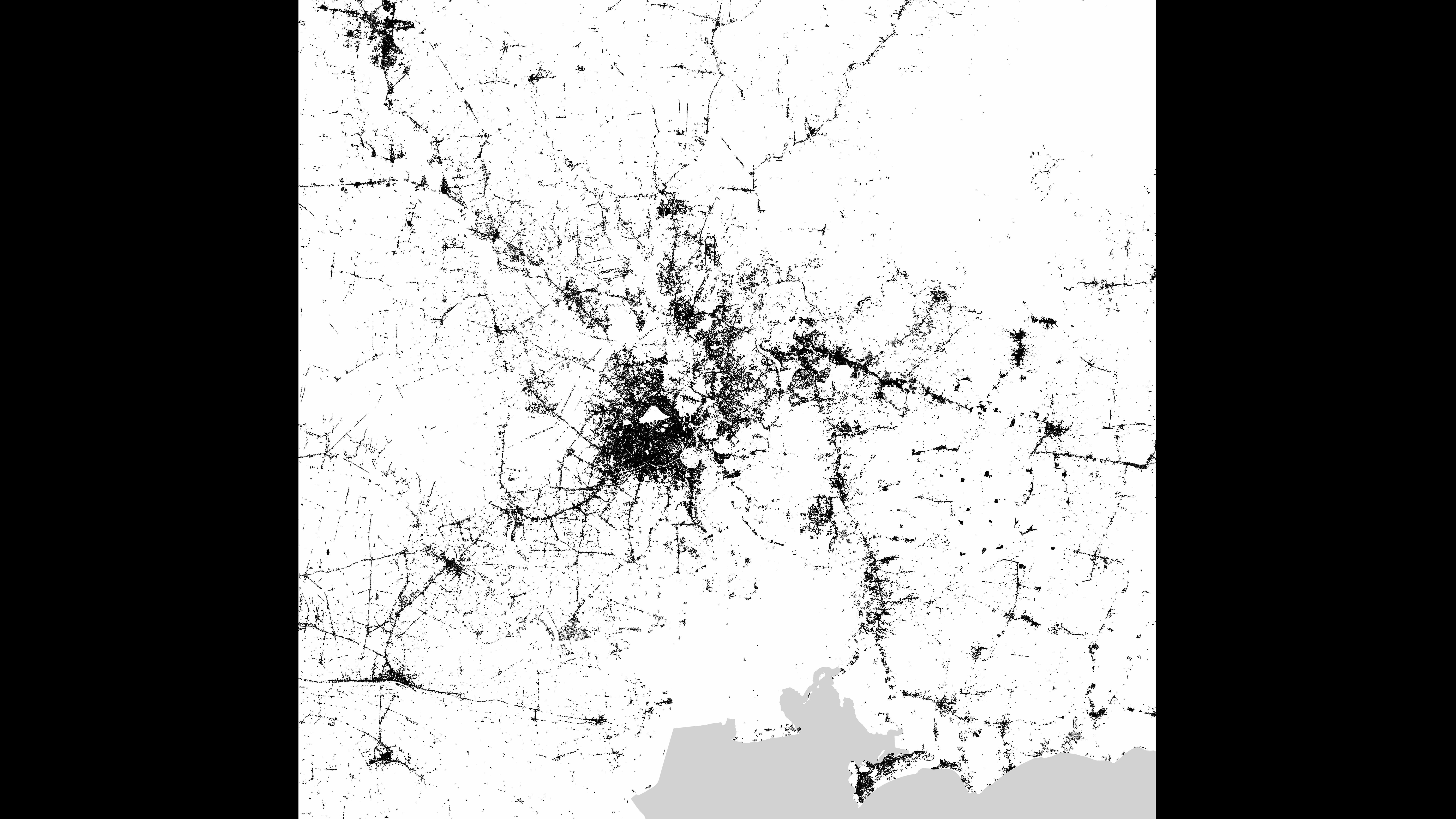 Roughly 6,000,000 people live in Ho Chi Minh City in Vietnam (formerly Saigon). This view, created using radar data from the German Aerospace Center (DLR), shows that the urban structures follow the water canals in filigree lines. In contrast, the river delta, a mangrove region, is barely settled at all.