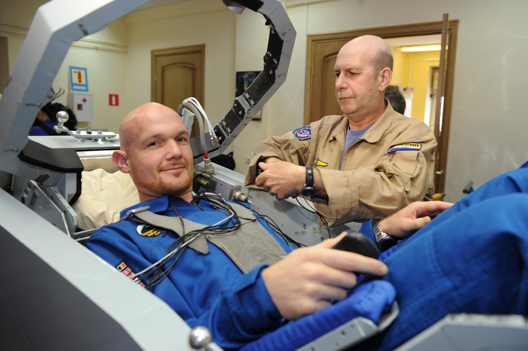 In the centrifuge at the Gagarin Cosmonaut Training Center, Alexander Gerst trained to cope with several times the normal force of Earth gravity.