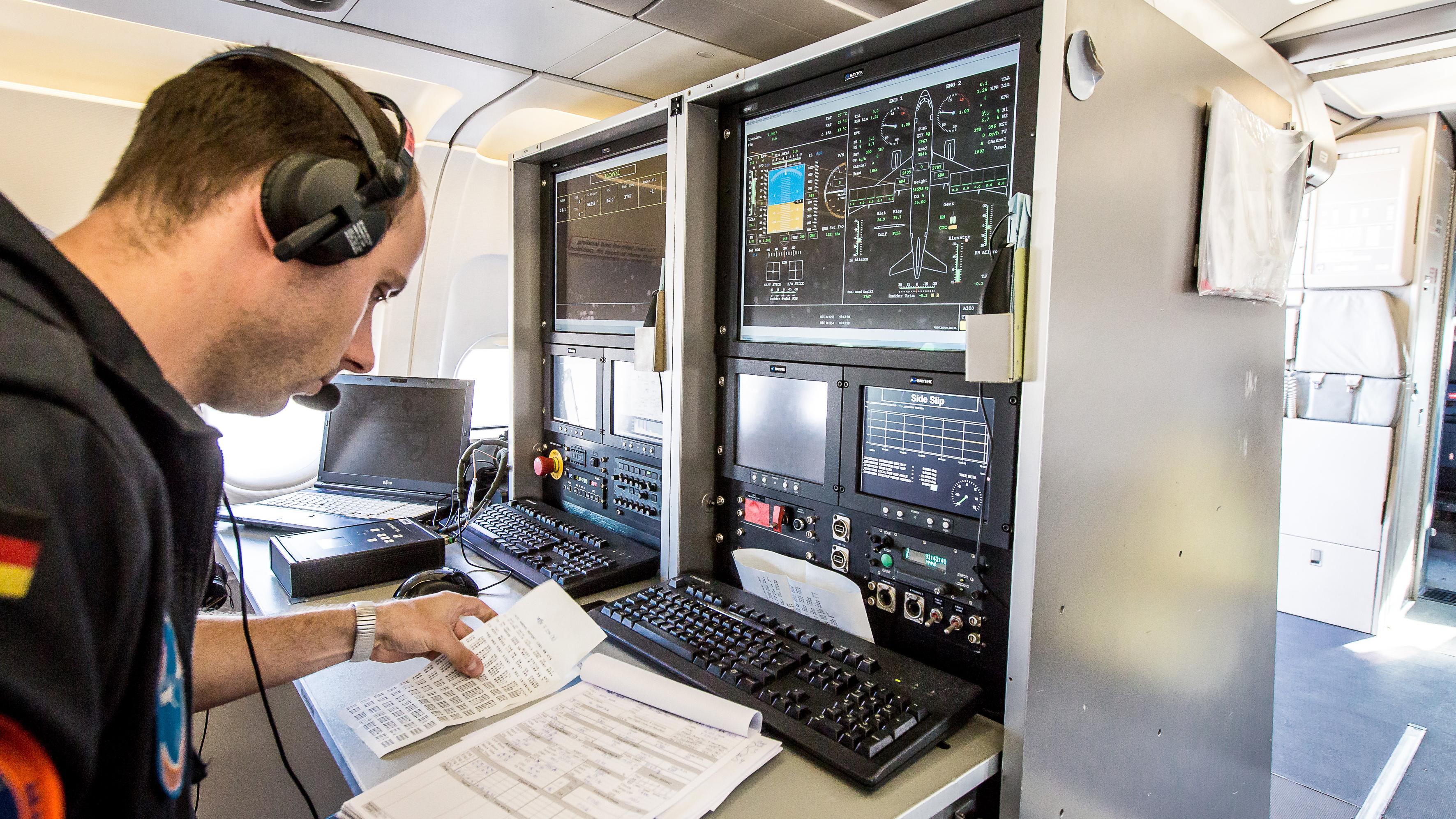 Flight test engineer Adrian Müller monitored the flight trial from the ATRA measuring system.