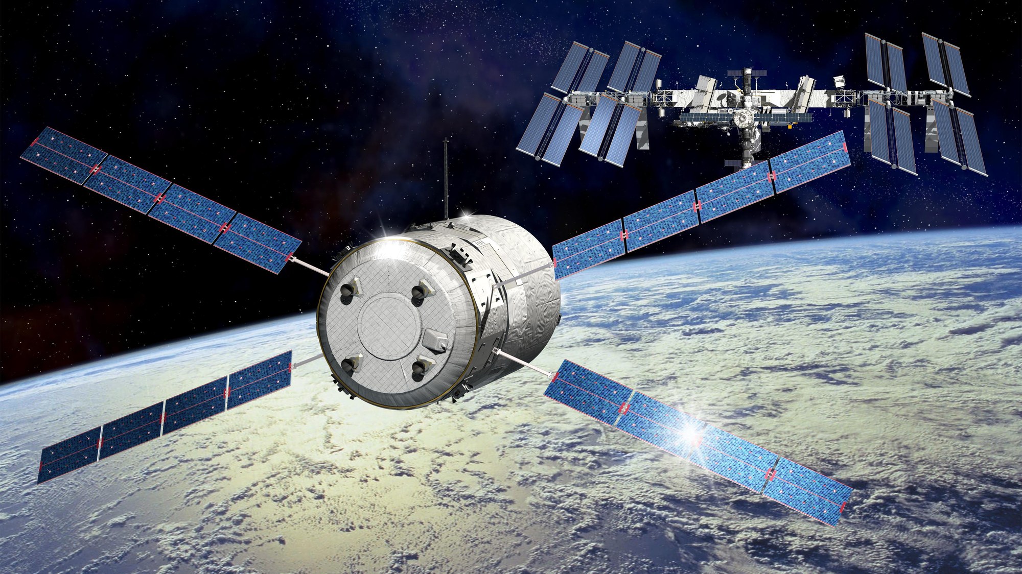 Artist’s impression of the European space transporter ATV-5 ‘Georges Lemaître’ automatically docking with the International Space Station. German ESA astronaut Alexander Gerst will monitor the manoeuvres and intervene if necessary.