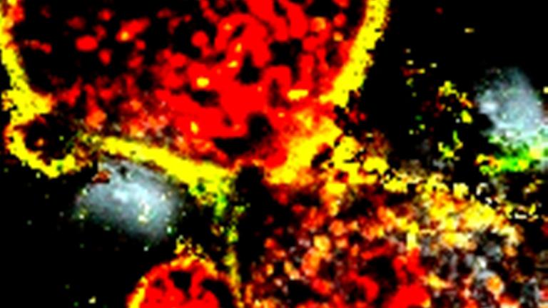 The cyanobacteria that the German Aerospace Center (DLR) is sending to the International Space Station as part of the BIOMEX experiment have already proven their tenacity and survival skills in a simulated Martian environment here on Earth. This image shows living cells, marked with a fluorescent dye, after undergoing a Mars simulation.