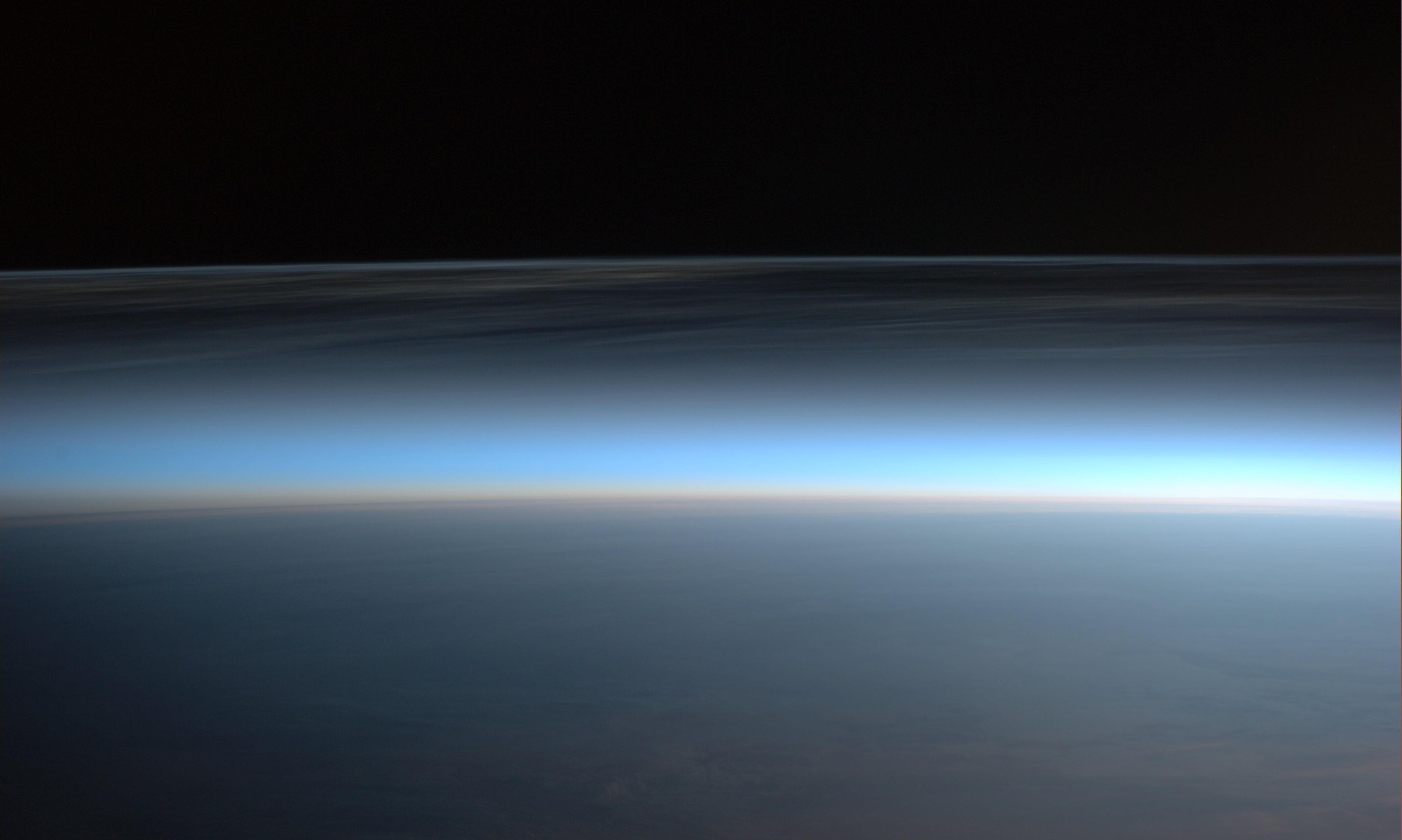 On 26 July 2014, during his ‘Blue Dot’ mission on board the International Space Station, German ESA astronaut Alexander Gerst took this photograph of what are referred to as a ‘noctilucent clouds’. These are formed when ice crystals accumulate above the mesosphere, at an altitude between 81 and 85 kilometres.