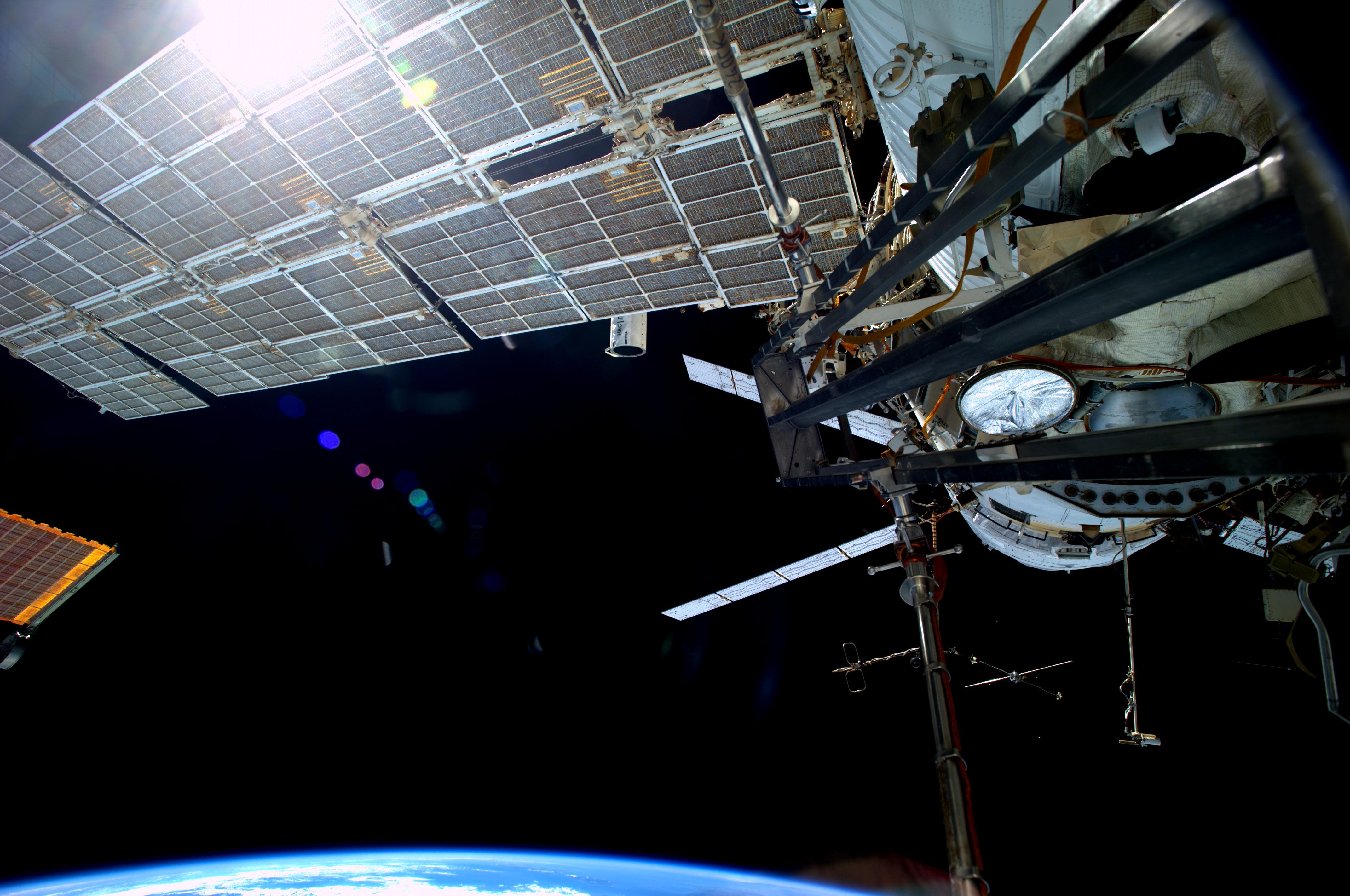 The International Space Station seen from the Russian airlock. In this photograph, taken by German ESA astronaut Alexander Gerst on 2 September 2014, the solar arrays of ATV-5 ‘Georges Lemaître’ can be seen in the background.