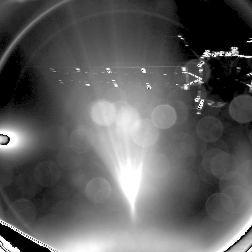 The Philae lander acquired this ‘goodbye’ image of the Rosetta spacecraft from a range of about 10 metres, shortly after the successful separation.
