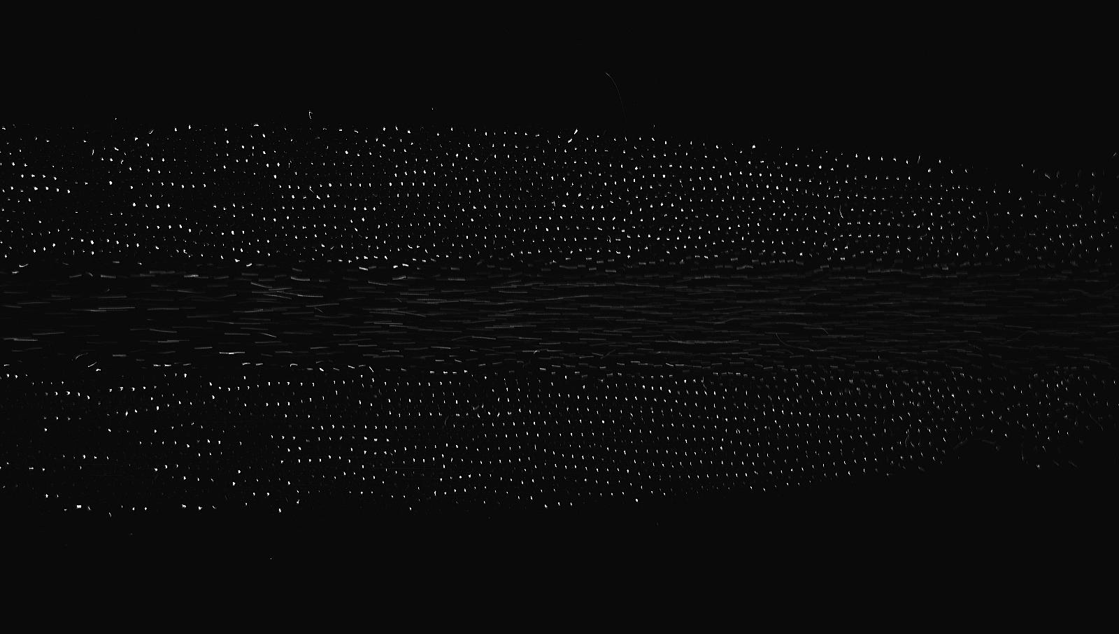 For the scientific commissioning of the PK-4 laboratory on the International Space Station (ISS), initial tests were carried out. This image shows a test with plasma crystals in the fluid phase (see previous image of the lattice structure). Influenced by a powerful laser beam, the charged particles at the centre move in the direction of the laser. As they interact with their neighbouring particles, a shear flow is created.
