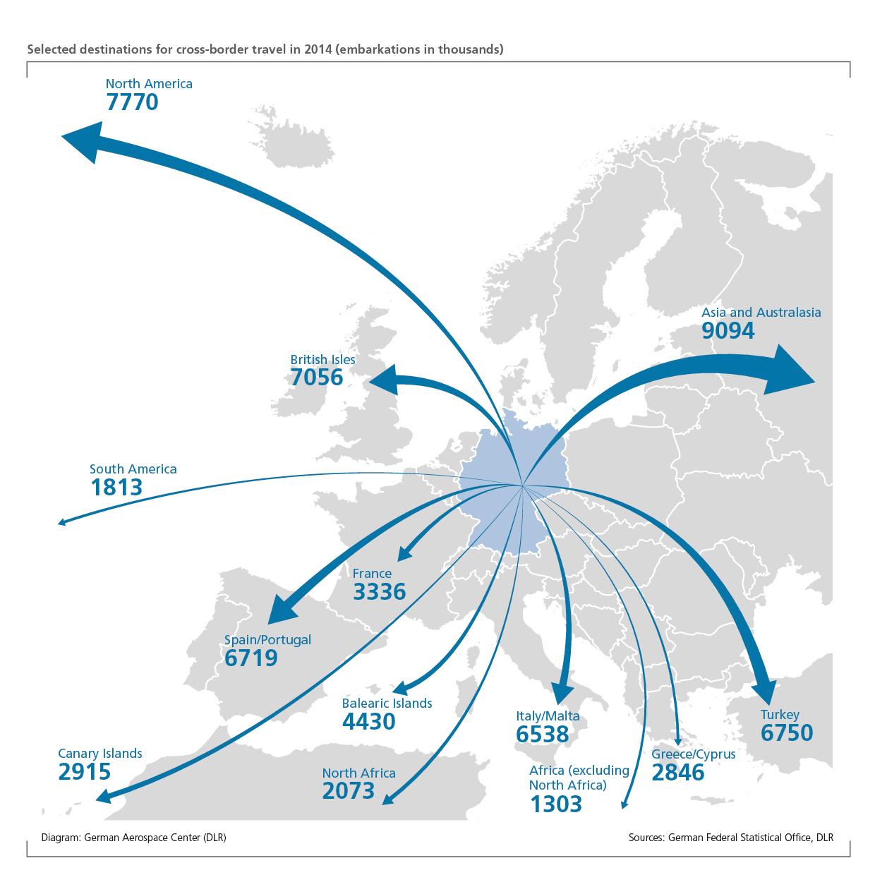 Selected target areas for cross-border air travel in 2014