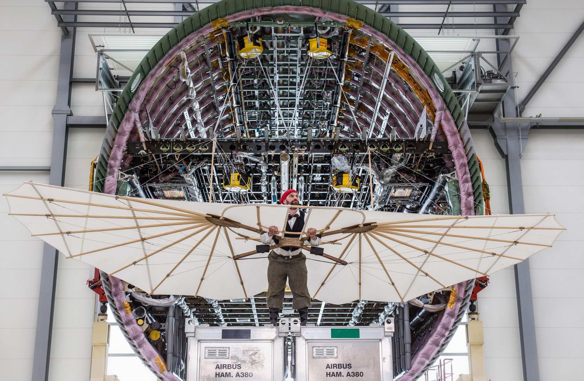 The so-called Normalsegelapparat, the normal glider, has a wing span of 6.7 metres and weighs only 20 kilograms - a real lightweight in comparison with its A380 counterpart, with a wing span of 80 metres and a weight of 569 tons.