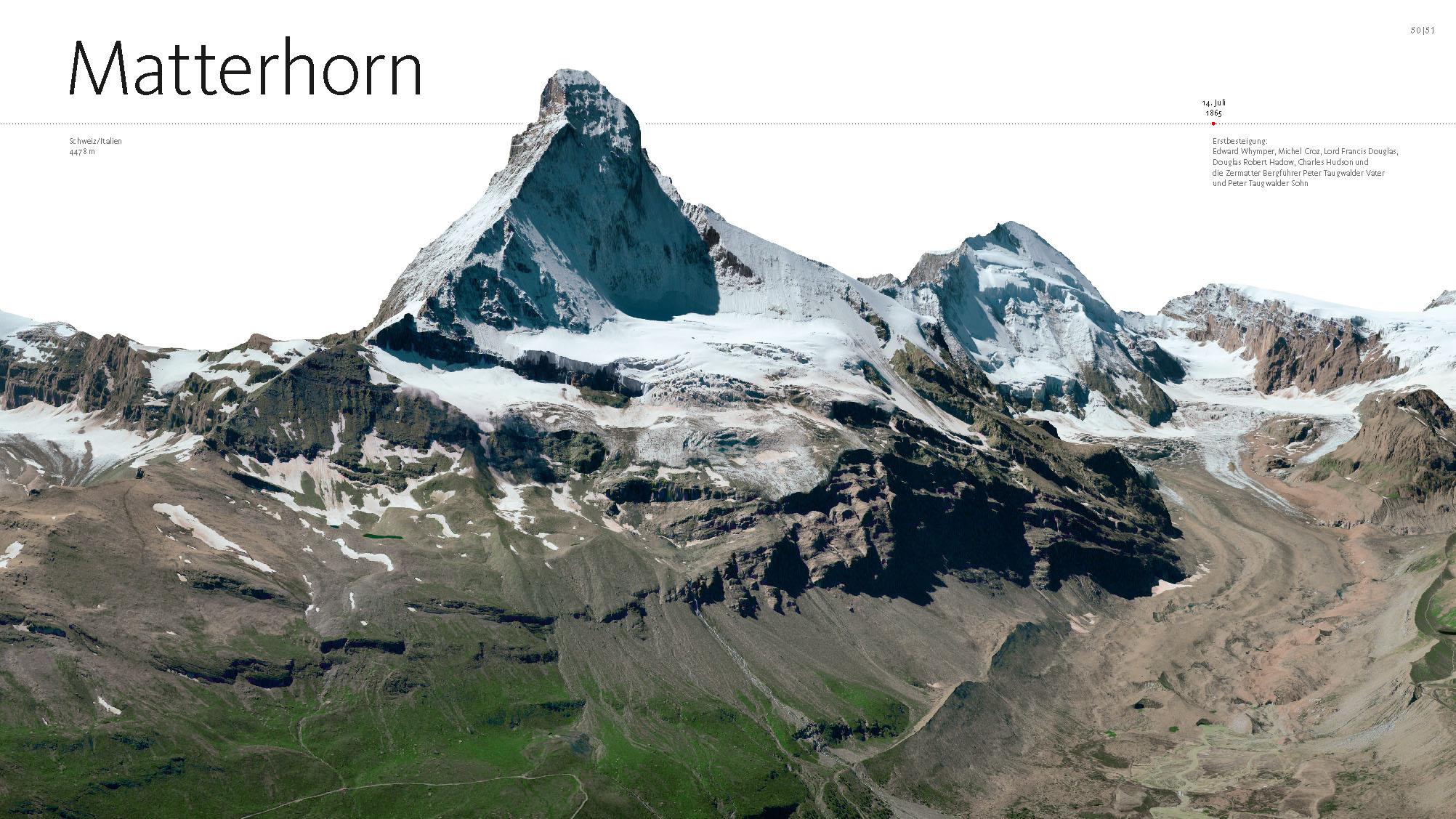 Advanced photogrammetric processing methodology developed at DLR's Earth Observation Center (EOC), combined with very high resolution optical satellite data, make it possible to measure and display huge mountains, like the Matterhorn, in a photographically realistic manner and with unprecedented quality.