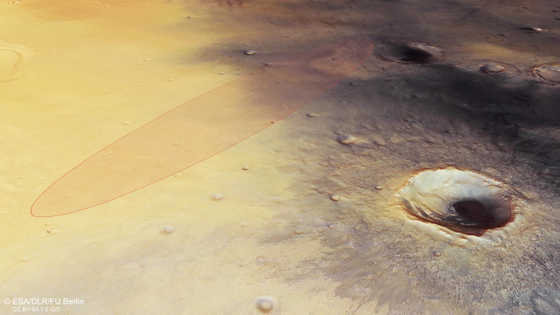 From the stereo image data acquired by he HRSC camera system, digital surface models can be derived that include (topographic) altitude information for each pixel. Such terrain models are useful for answering scientific questions but are also used for the characterisation of potential landing sites. The region in which the ESA landing demonstrator Schiaparelli will set down on 19 October 2016 – within this 15 kilometre wide and 30 kilometre long ellipse – on Mars was also examined in this way and ultimately selected.